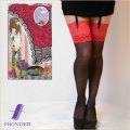 安心な日本製のバックシームの付いた幅広レース付きガーターストッキング