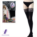 安心な日本製の幅広レース付き80デニール素材のガーターストッキング