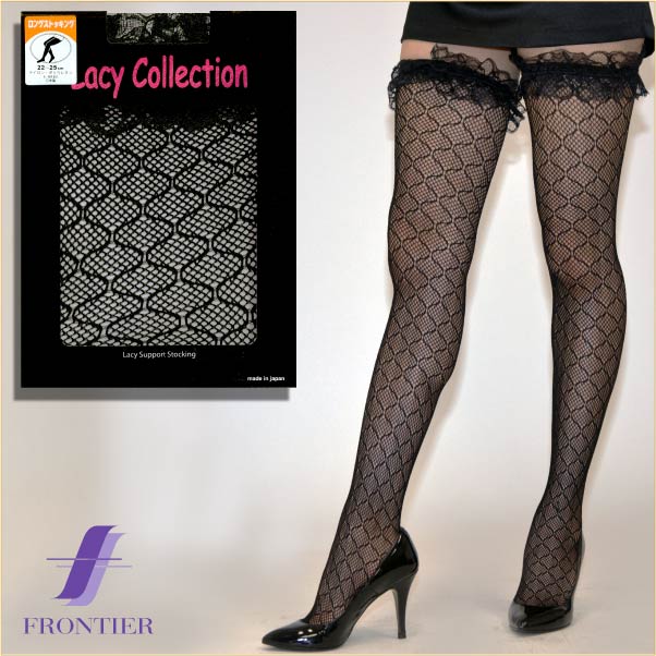Lacy フリル付ダイヤ柄ネットガーターストッキング ブラック 黒